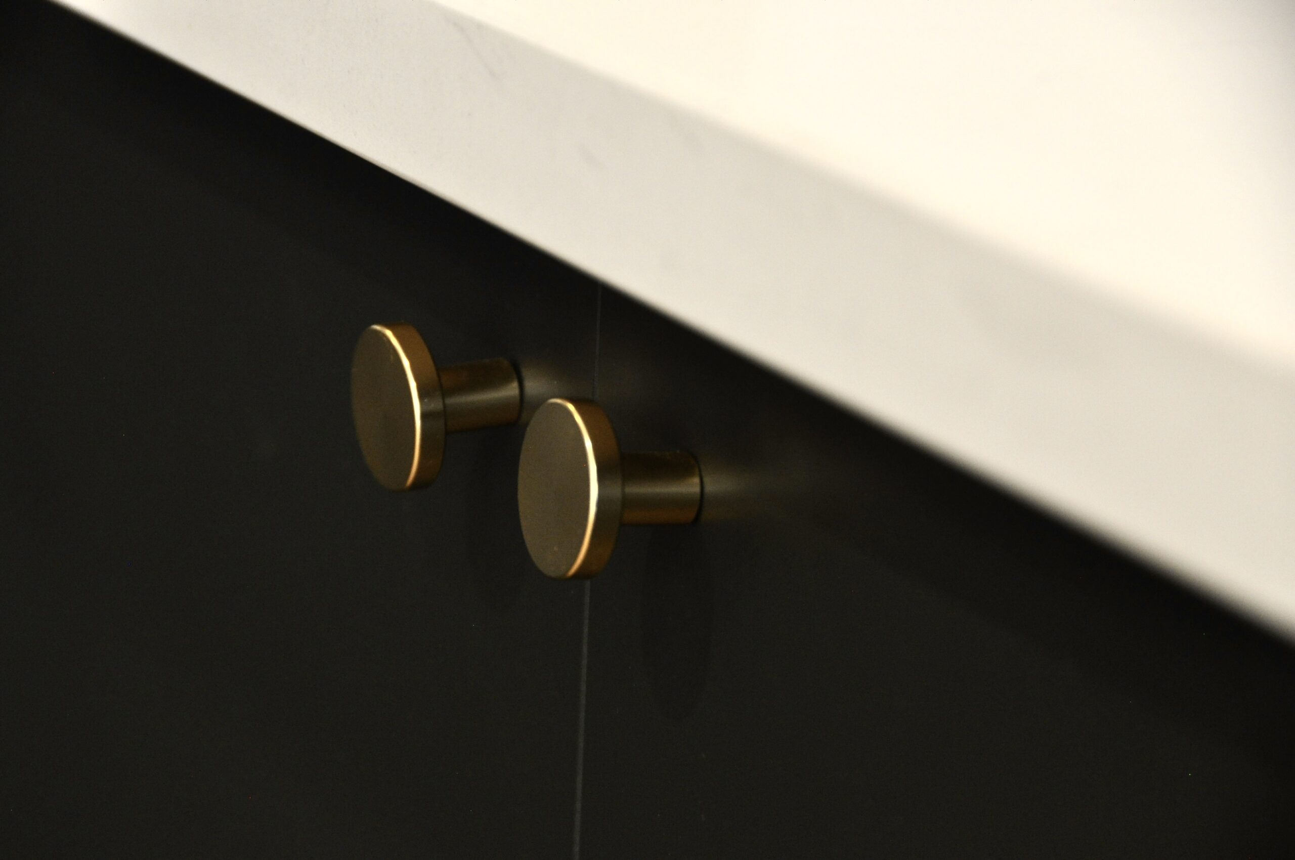 Chaque ligne, chaque matériau a été choisi pour créer un espace à la fois lumineux, fonctionnel et apaisant. Le contraste entre le blanc mat et le vert profond apporte une touche de caractère, tandis que les accents dorés et le quartz clair ajoutent juste ce qu’il faut de raffinement.